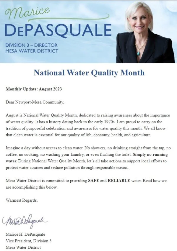 Marice was appointed to the Mesa Water District Board of Directors in 2017 and elected in 2018. She currently serves as Mesa Water’s Vice President and represents Division 3, which includes the communities of North Costa Mesa. This area covers several Costa Mesa landmarks, such as South Coast Plaza, Segerstrom Center for the Arts, and Orange Coast College.